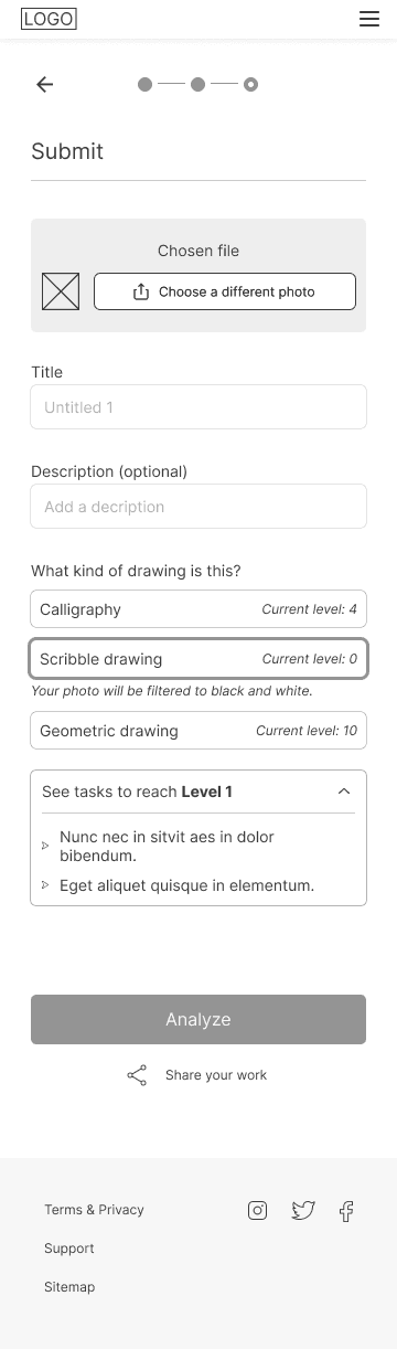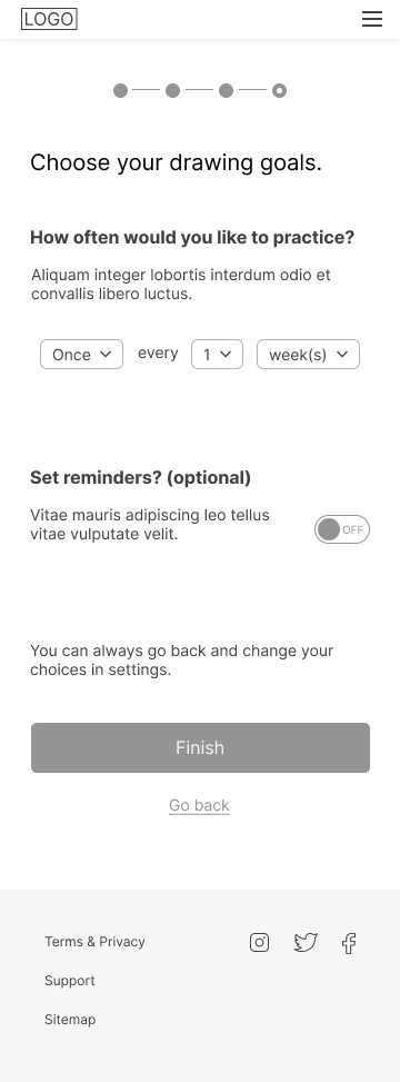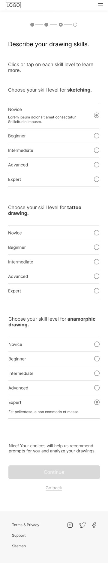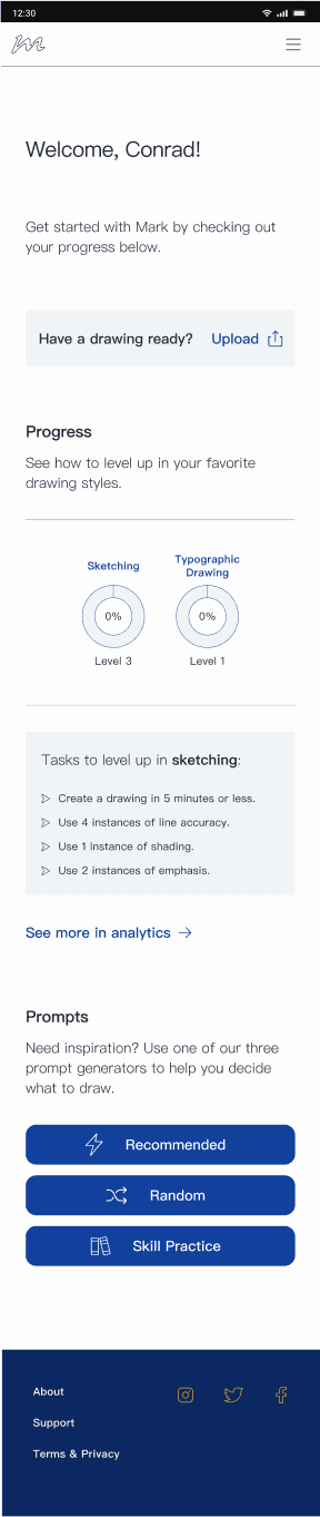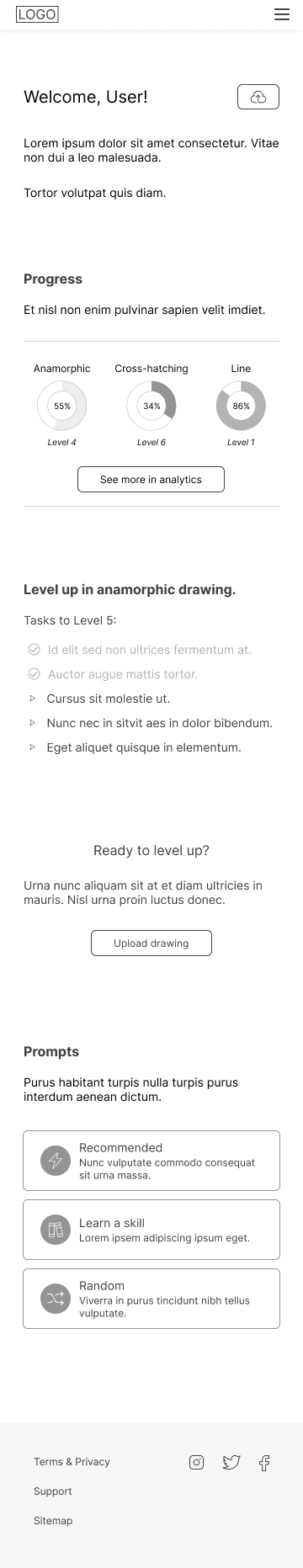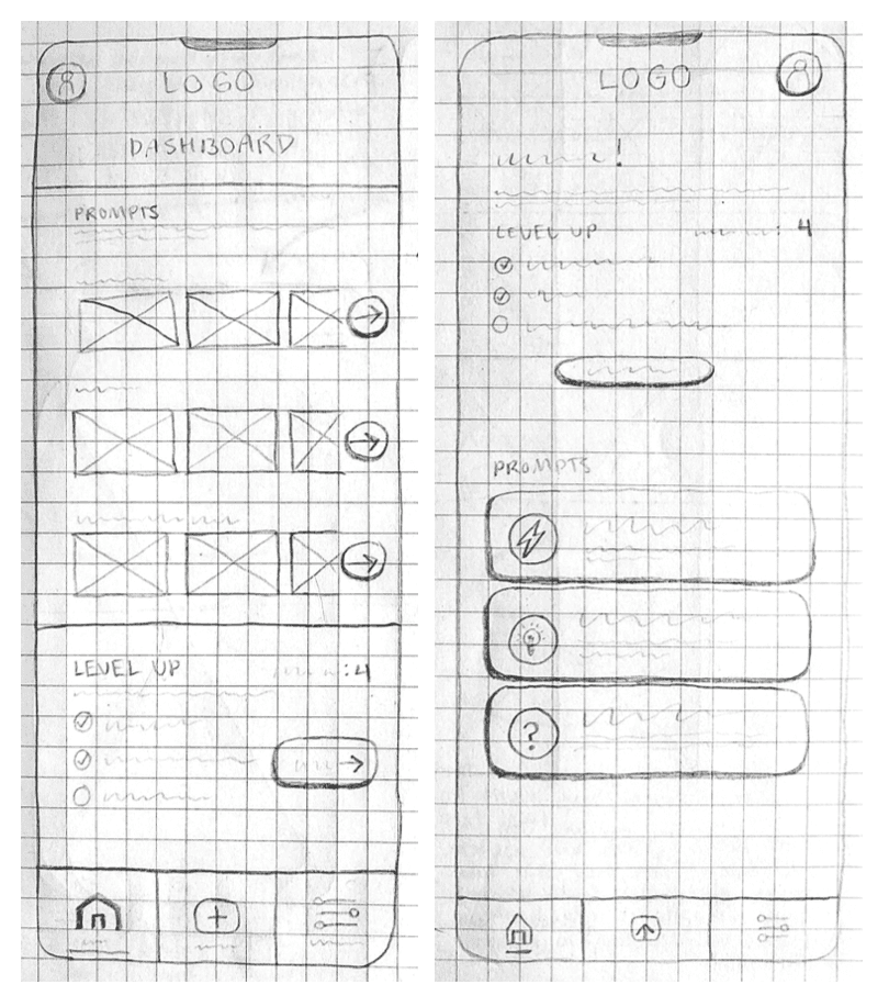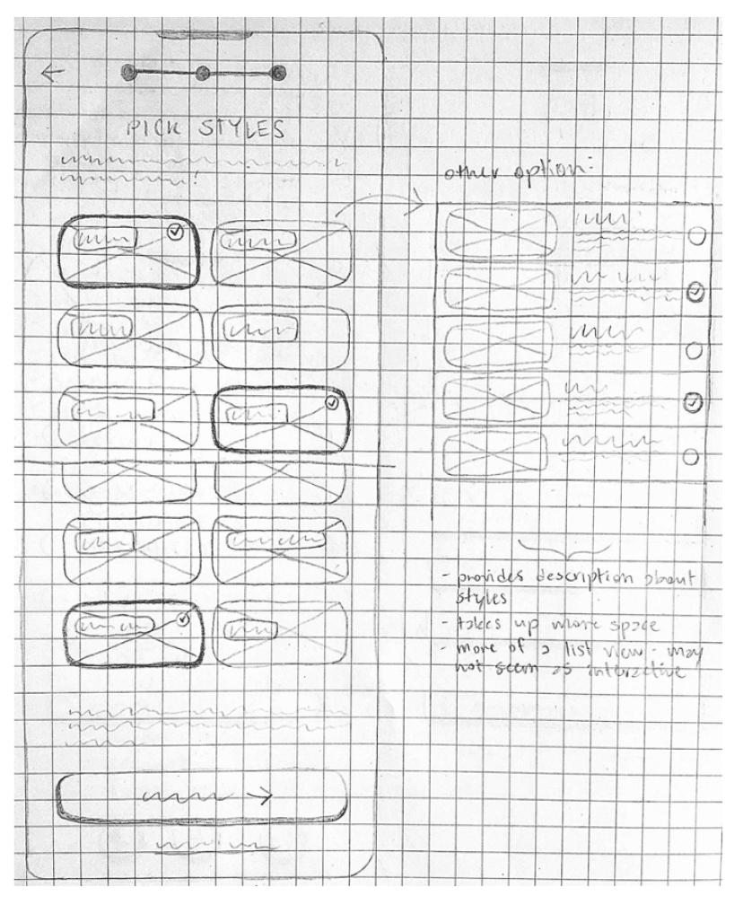 low-fidelity sketching helped me explore interaction design, while mid-fidelity helped me think through the visuals and content.