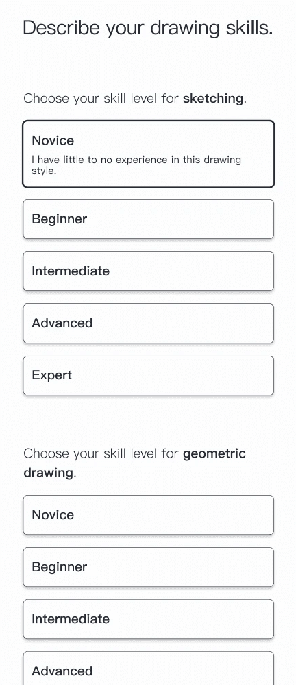 i did this through one-on-one user interviews with five people who were currently or previously interested in drawing.